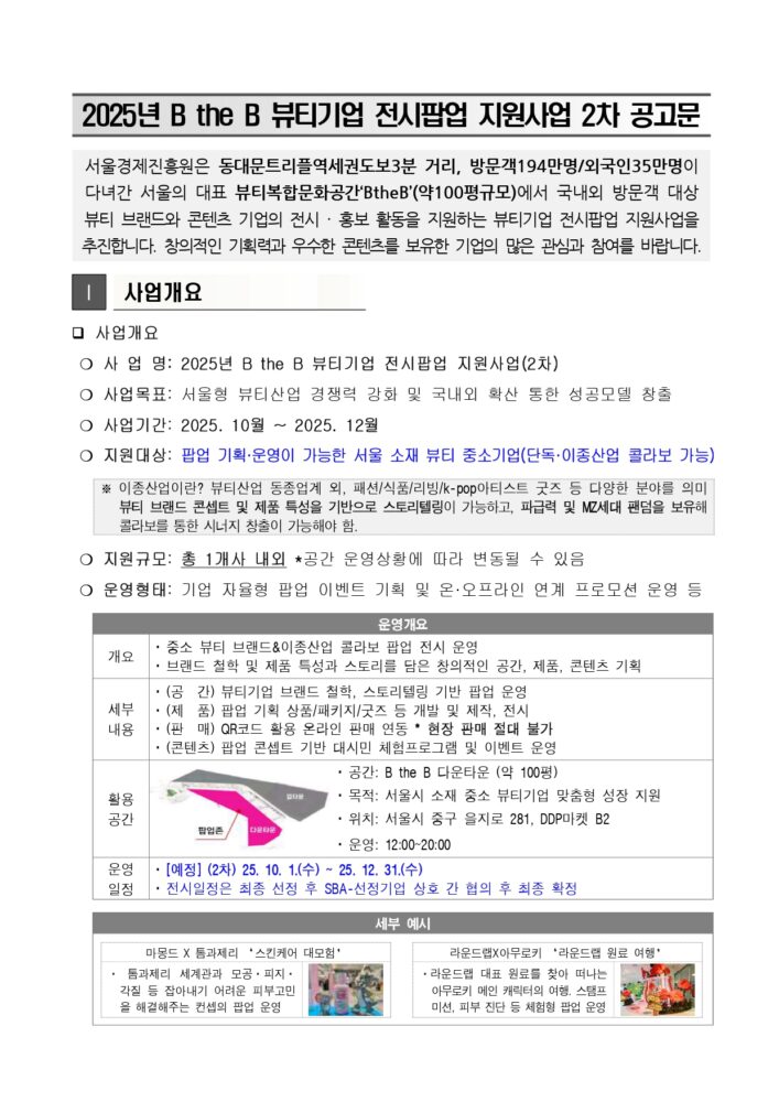 [NOTICE] 2025년 B the B 뷰티기업 전시팝업 지원사업 2차 모집(연장)(~9/25)