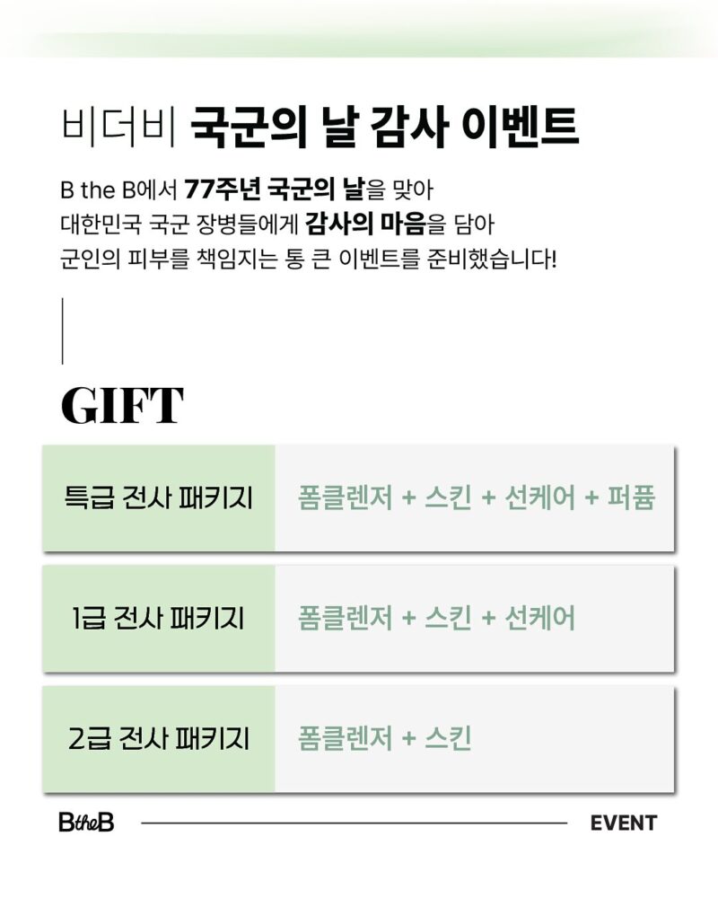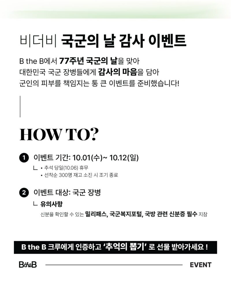 [EVENT] B the B 국군의 날 감사 이벤트(10/1~10/12)