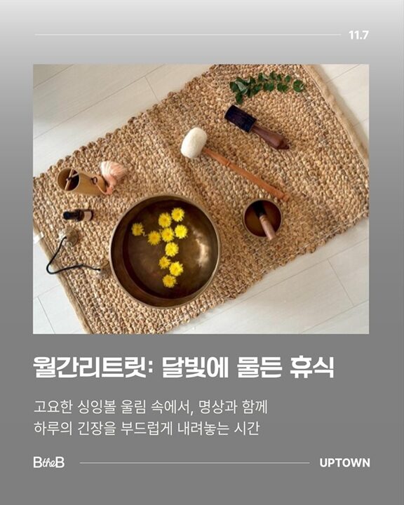 고요한 싱잉볼의 울림 속에서 하루의 긴장을 부드럽게 내려놓는 시간을 가져보세요. 🌙