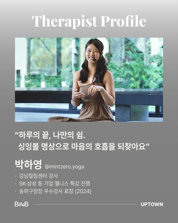 싱잉볼 테라피스트(@mintzero.yoga)와 함께 아로마 향 속에서 몸과 호흡을 이완하고,
